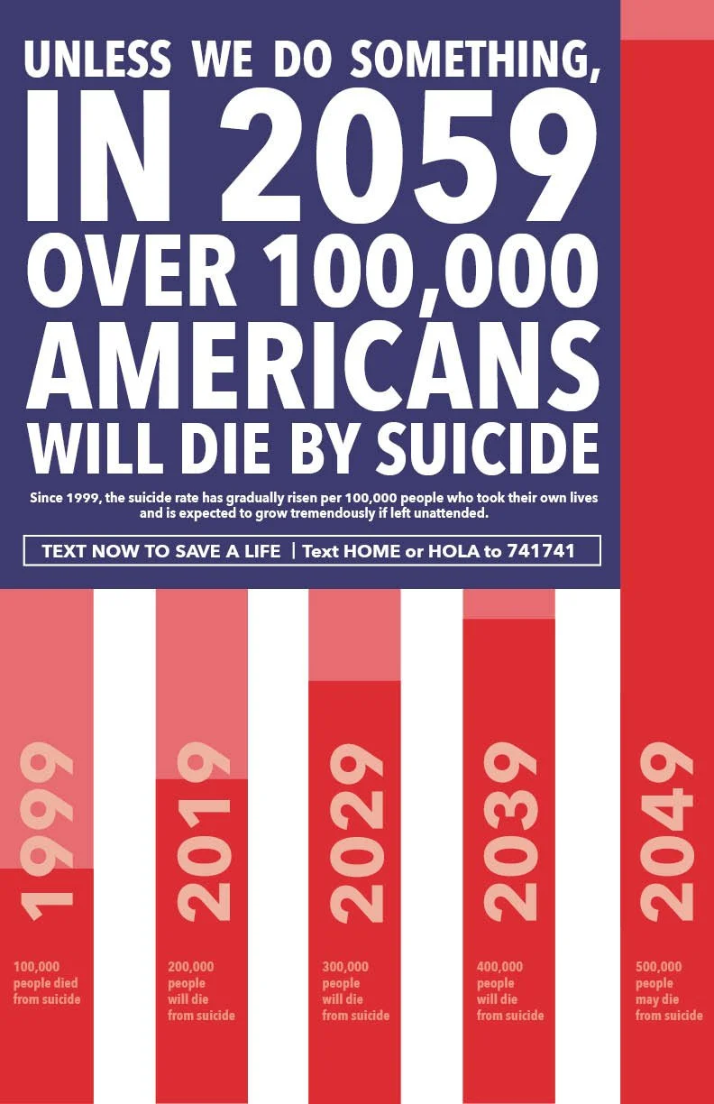 Create a poster that raises awareness about rising suicide rates in the U.S. and encourages immediate action.