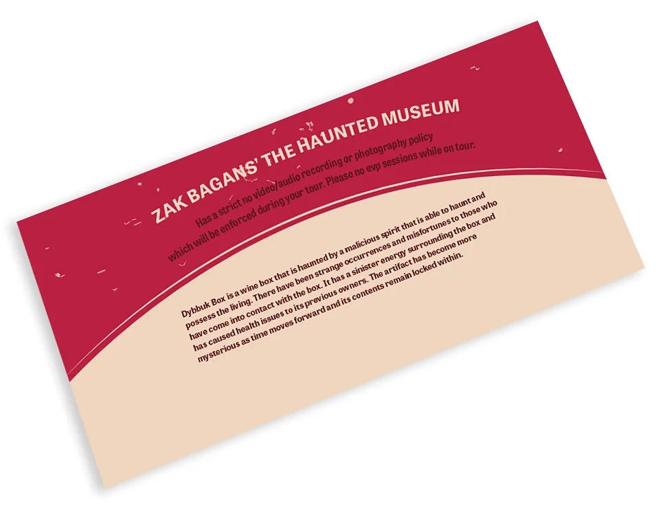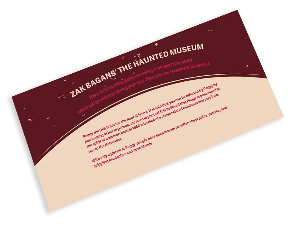Develop a cohesive branding system for Zak Bagans’ The Haunted Museum, reflecting its eerie, mysterious identity.