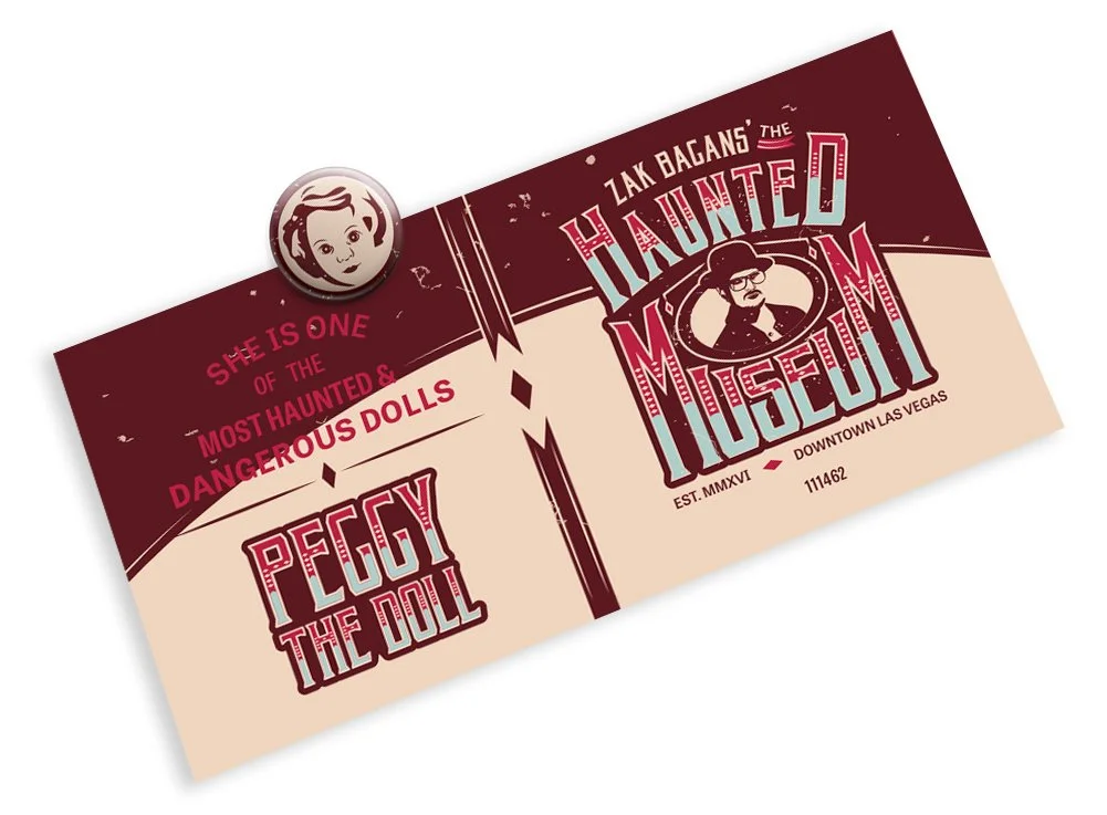 After visiting Zak Bagans' The Haunted Museum in Las Vegas, I was so inspired by the immersive experience that I chose to reimagine its branding as a personal design project. I developed a bold, vintage-inspired logo, redesigned the museum’s main signage, and created custom promotional materials including souvenir pins and themed admission tickets. The visual identity leans into the eerie yet playful atmosphere of the museum, using a limited color palette, retro typography, and illustrated elements that nod to the paranormal exhibits—like the infamous Peggy the Doll.